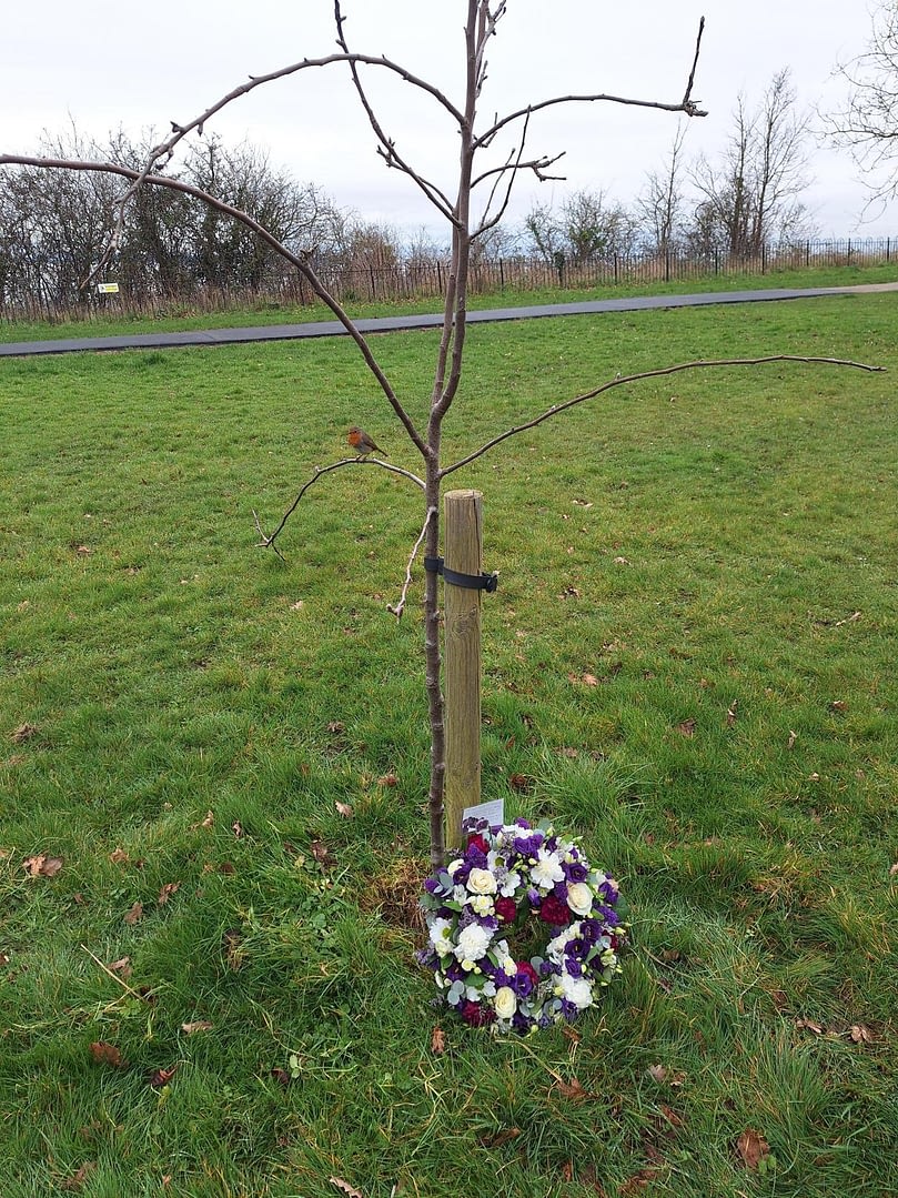 Following the minute’s silence, a robin perched on the tree of remembrance, as shown in the photograph.